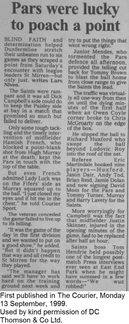 Saturday, 11th Sep 1999 The Courier Report 13/09/1999 (StMirren(h))