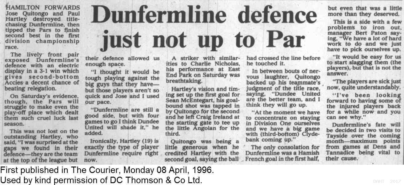 Saturday, 6th Apr 1996 The Courier Report 08/04/1996 (HamiltonAcademical(h))