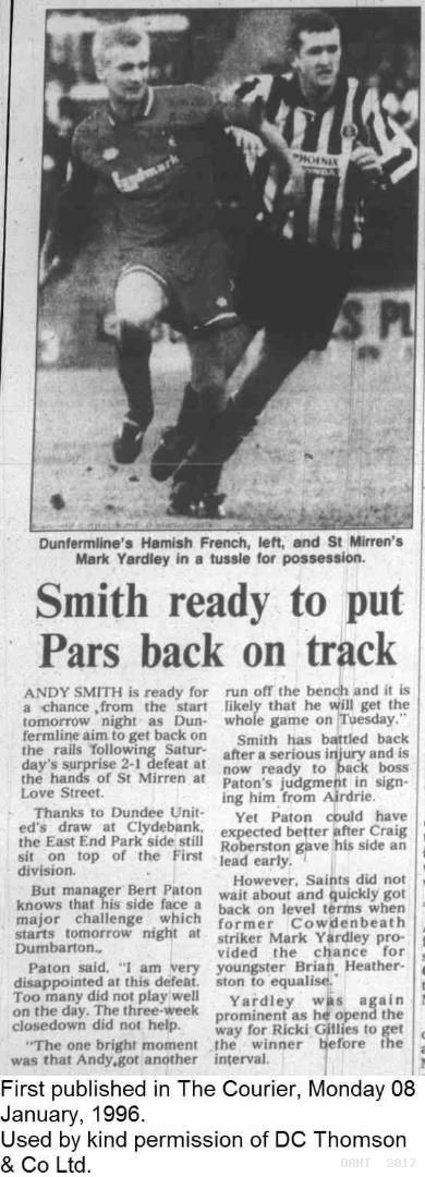 Saturday, 6th Jan 1996 The Courier Report 08/01/1996 (StMirren(a))