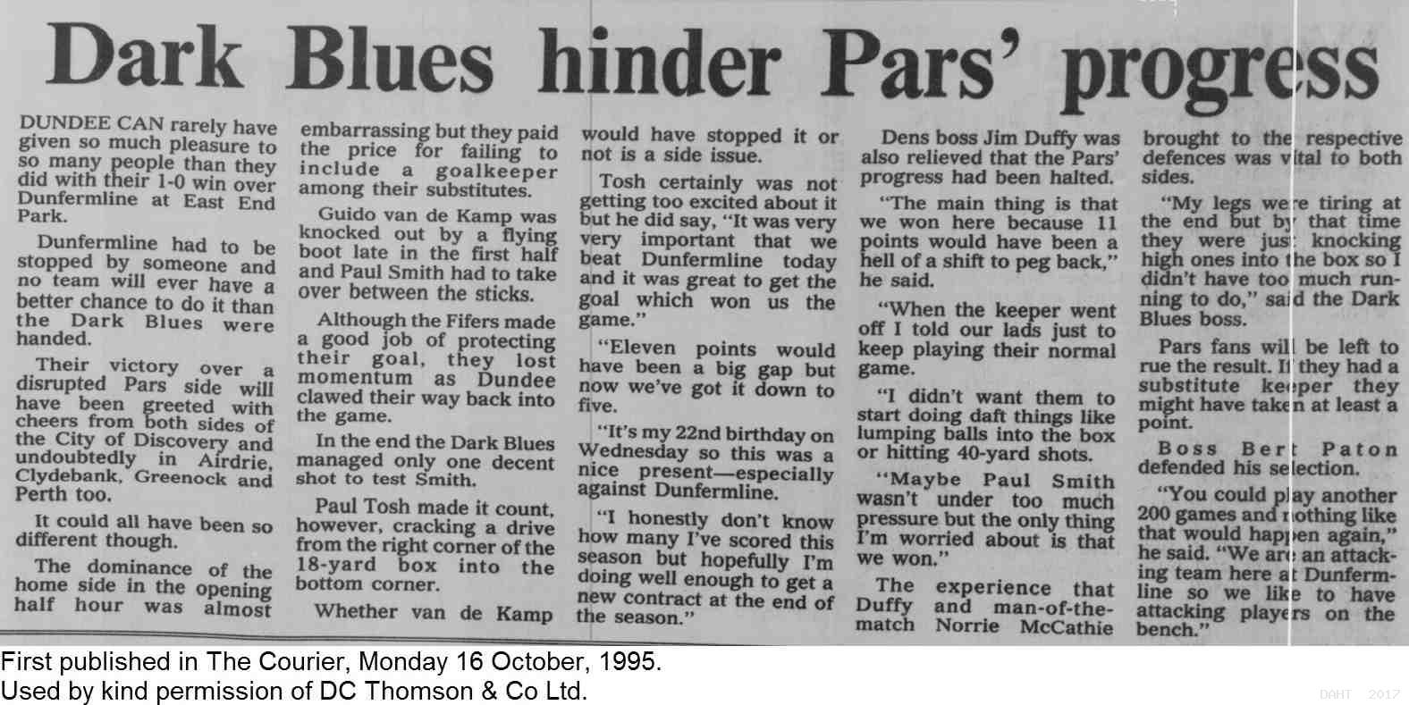 Saturday, 14th Oct 1995 The Courier Report 16/10/1995 (Dundee(h))