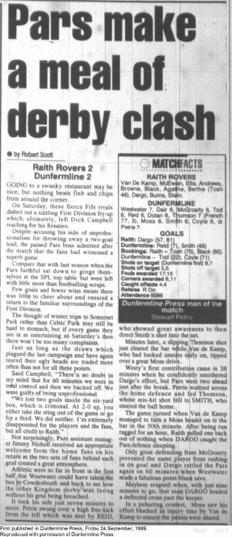 Saturday, 18th Sep 1999 Match Report 24/09/1999 (RaithRovers(a))