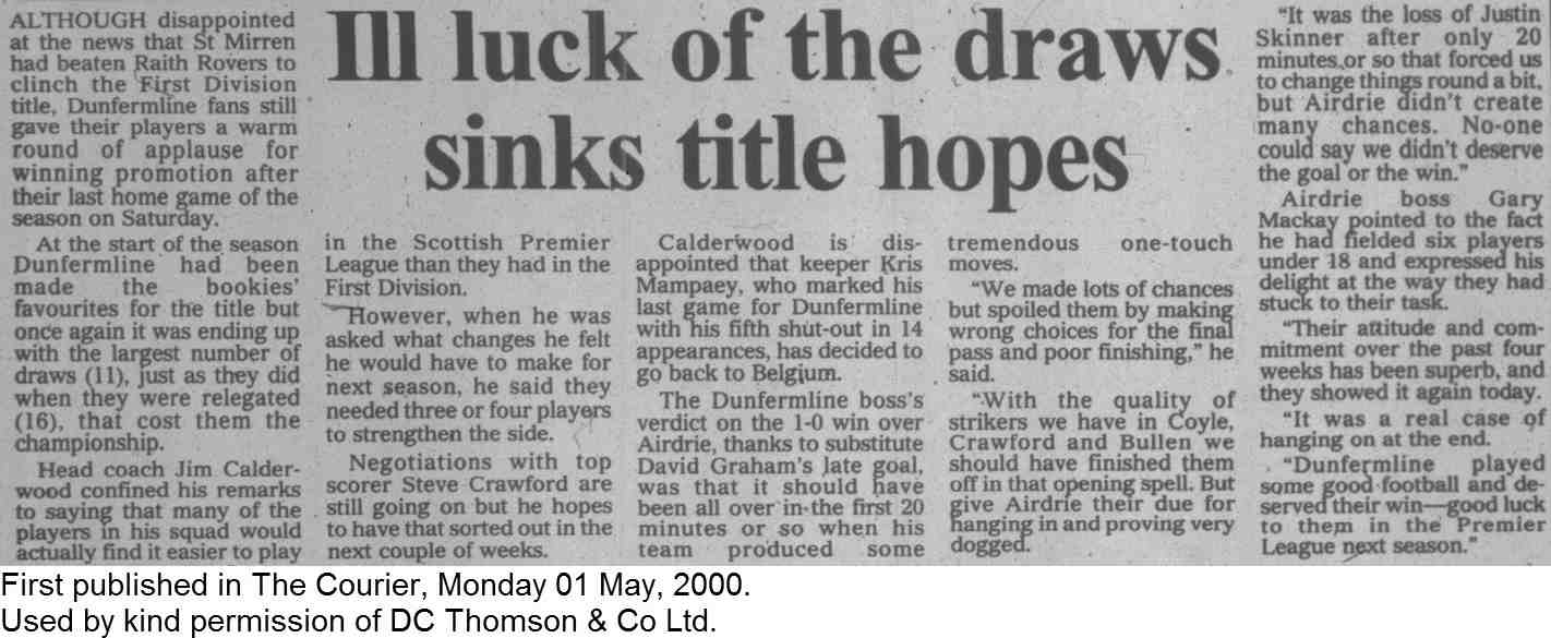 Saturday, 29th Apr 2000 The Courier Report 01/05/2000 (Airdrieonians(h))